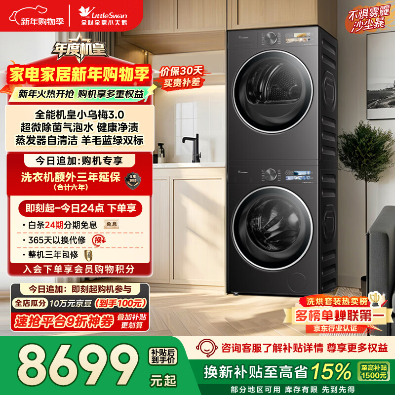 小天鹅(LittleSwan)年度机皇 小乌梅3.0 洗烘套装 10KG滚筒洗衣机全自动+热泵烘干机 AI智投 TG10VE40+VE40 国家补贴