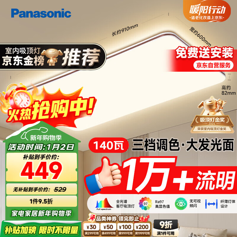 松下(Panasonic)吸顶灯全光谱护眼140W三档调色客厅大灯【国家补贴】【包安装】