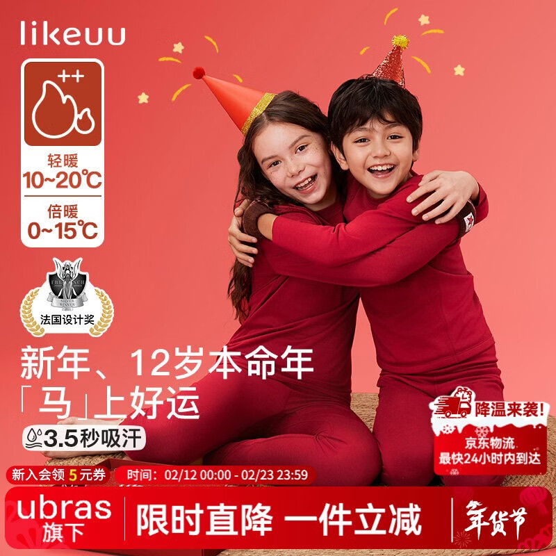 like uu【董洁同款】儿童保暖内衣套装本命年红色男女童秋衣裤睡衣新年