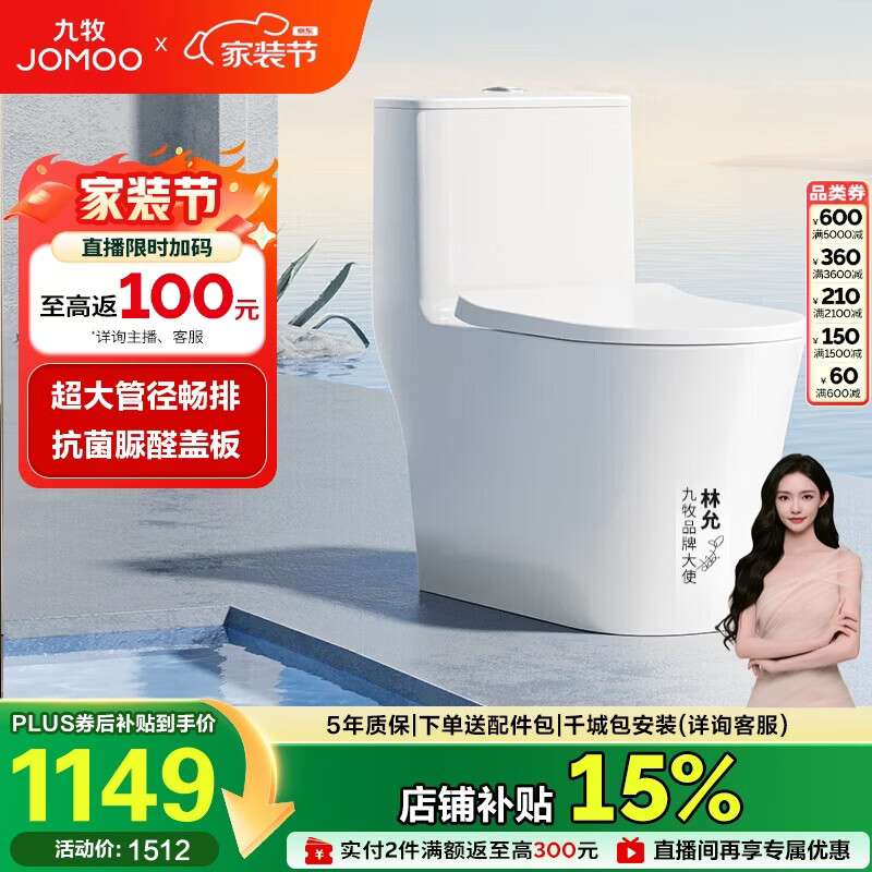 九牧(JOMOO)11322-2-2/31KB-1抗菌一级水效大冲力马桶虹吸式加坐便器305坑距