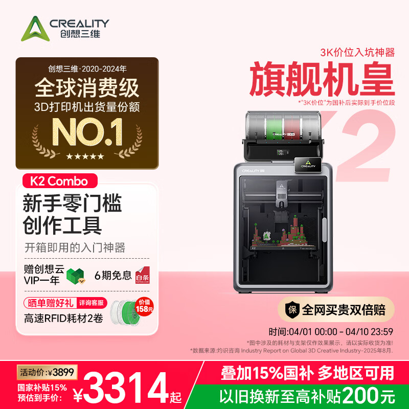 创想三维K2 Combo 3D打印机桌面家用FDM全自动调平大尺寸多色模型高速3d打印机器