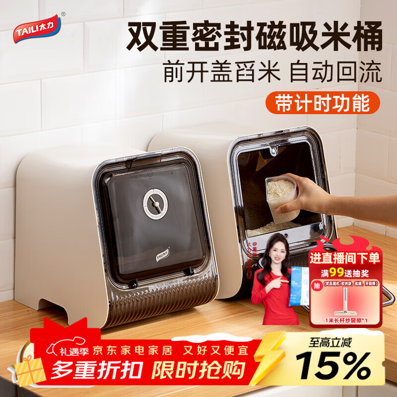 太力米桶大米储存容器防虫米箱防潮密封厨柜米缸食品级面粉收纳盒20斤