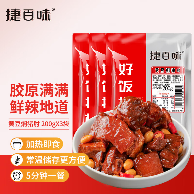 谷言预制菜 料理包 常温黄豆焖猪肘200g*3 加热即食 捷百味