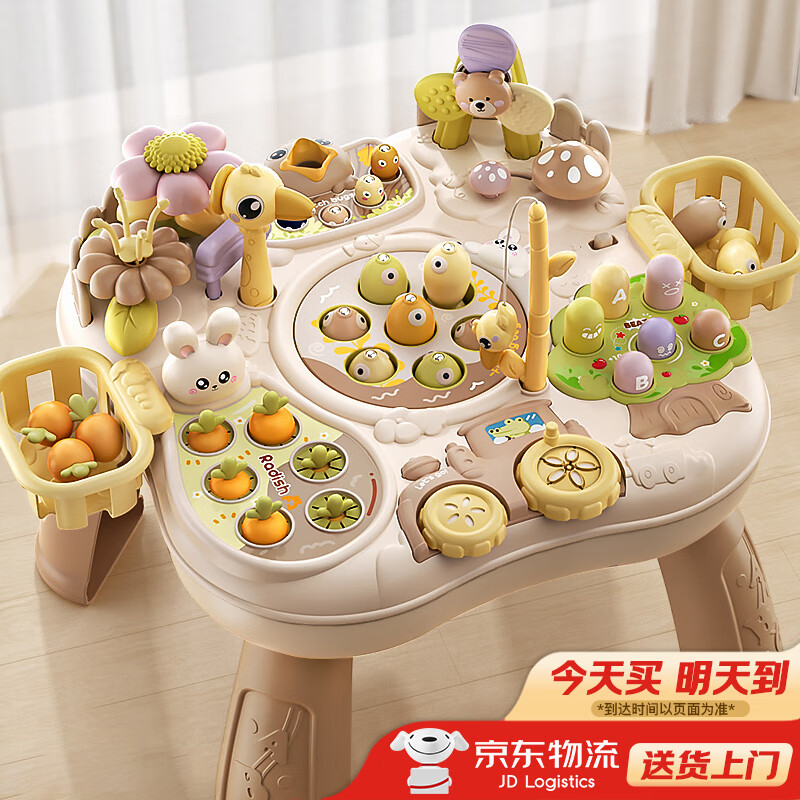 班迪萌(BANDIMENG)多功能游戏桌蒙氏早教忙碌板学习桌儿童玩具1-3岁生日圣诞礼物 早教农场乐园游戏桌【8合1】咖色 婴幼儿玩具1-3岁婴儿玩具宝宝周岁礼物新年礼物