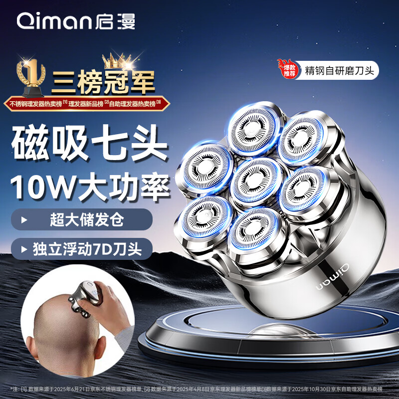 启漫光头神器剃光头专用自助理发器成人磁吸七刀头男士电动大功率剃须刀刮光头神器送爸爸父亲生日礼物