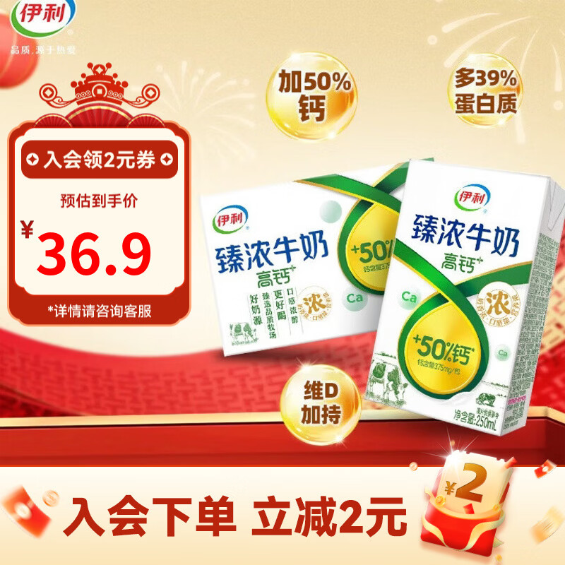 伊利臻浓牛奶高钙 营养丰富 早餐搭档年货礼盒 臻浓高钙250ml*16盒*1箱