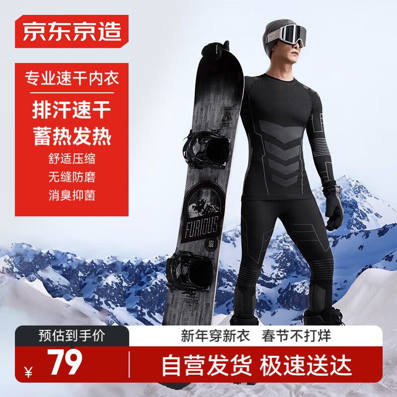 京东京造御雪300压缩速干衣男保暖内衣滑雪登山户外运动保暖套装 黑色M
