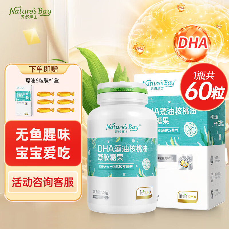 天然博士藻油dha婴幼儿婴儿宝宝专用儿童孕妇学生dha藻油+核桃油 双营养藻油DHA1瓶60粒