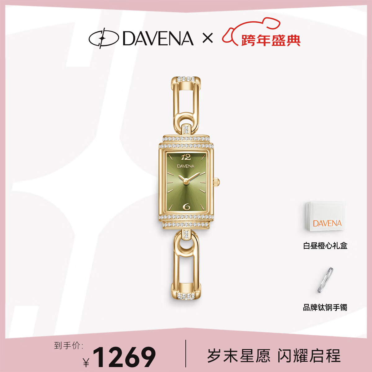 Davena【新年礼物】蒂玮娜小别针手表女款气质轻奢小绿表小方表女士腕表