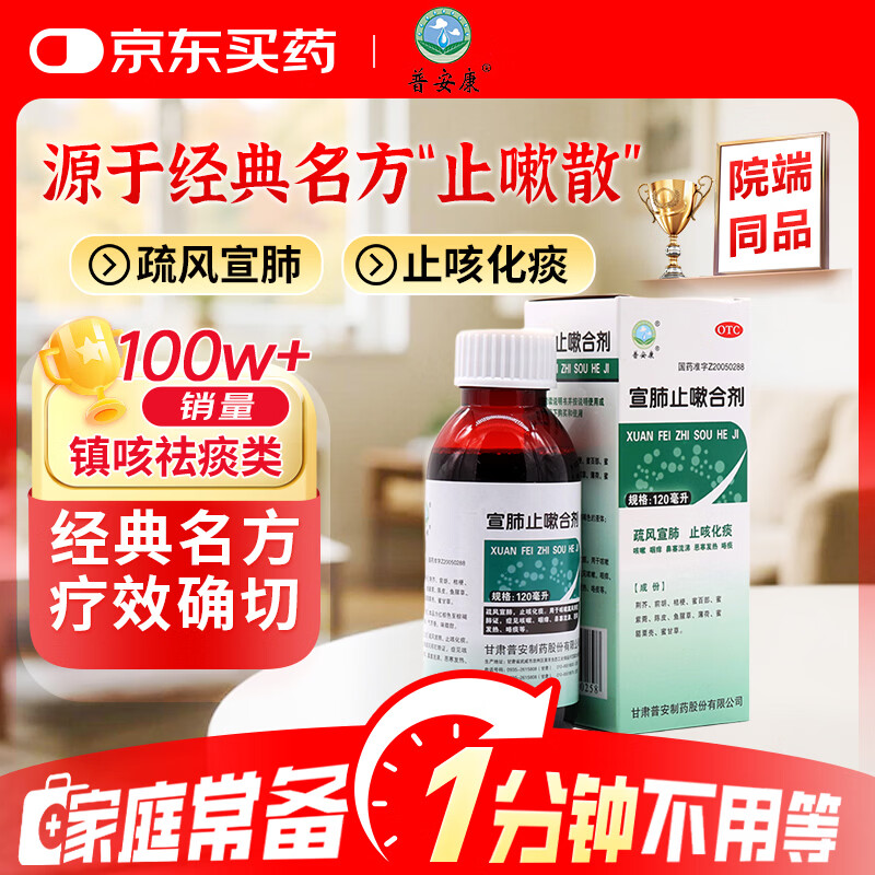 普安康【常备安心】宣肺止嗽合剂120ml 疏风宣肺 止咳化痰 用于咳嗽咽痒 鼻塞流涕 发热 新冠指南用药感冒