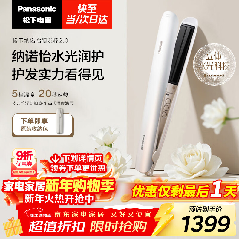 松下(Panasonic)纳诺怡膜发棒2.0直板夹卷直防烫发棒男士夹板短发送女生新年生日礼物EH-HN10