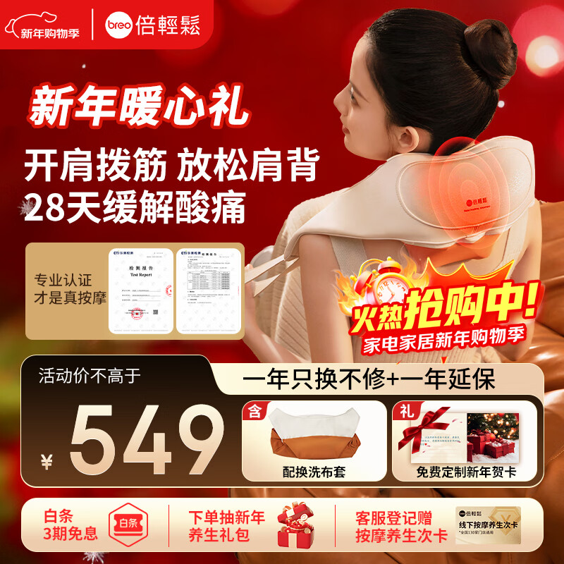 倍轻松(breo)N6mini【金推手】颈椎按摩仪器按摩披肩肩颈按摩仪器斜方肌腿腰颈部 送男女朋友生日新年礼物