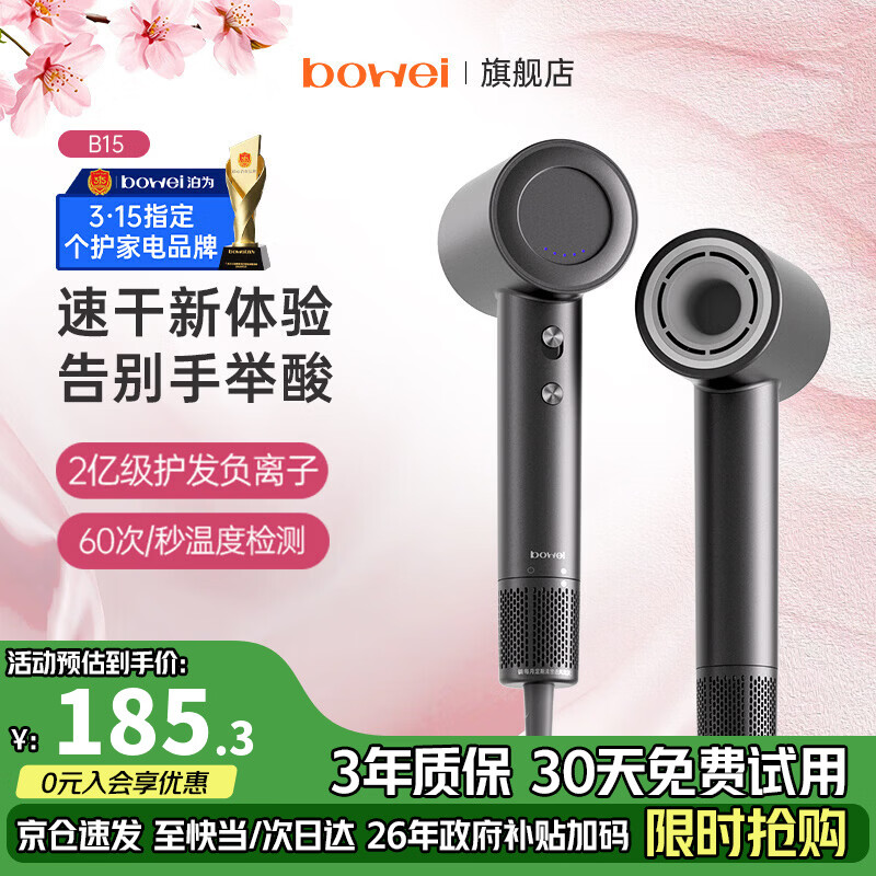 泊为bowei五星级酒店同款高速吹风机B15家用负离子大功率不伤发速干护发男女士专用电吹风筒生日礼物 B15太空灰(实用版) 【五星级酒店同款】