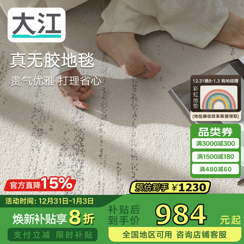 大江星光宝石无胶地毯客厅免洗防水轻奢高级感沙发国家补贴190x300cm
