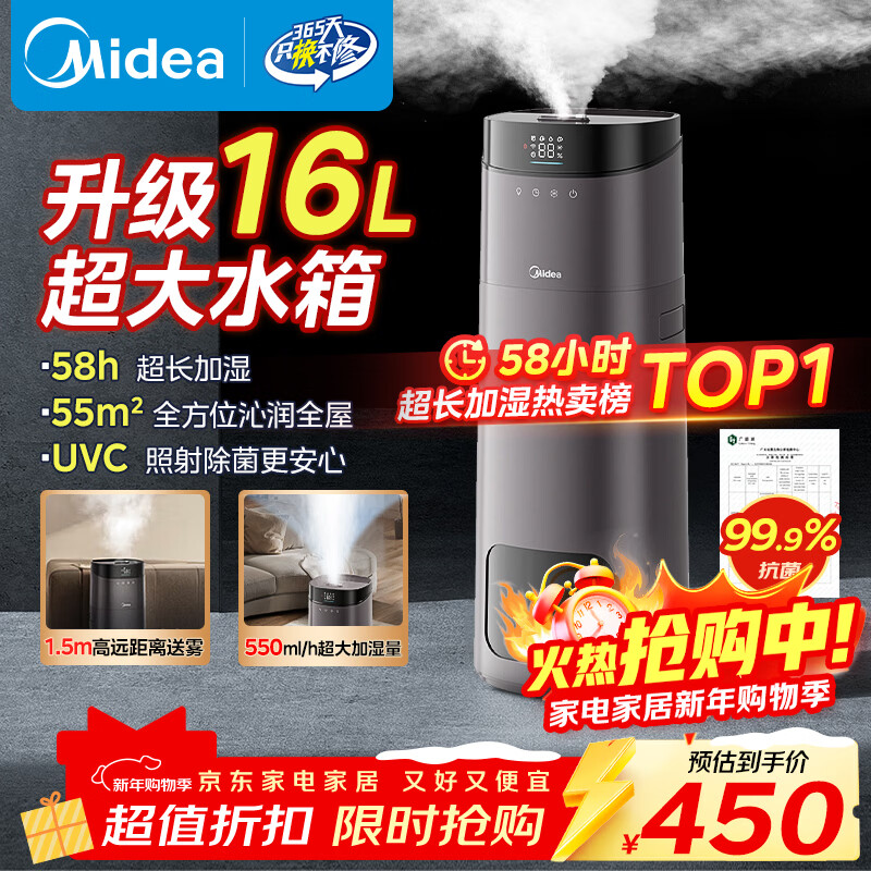 美的(Midea)空气加湿器超大雾家用卧室大容量母婴幼儿孕妇静音除菌客厅冷蒸发空调取暖喷雾器元旦礼物SCK-L160