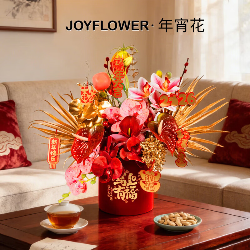JoyFlower年宵花福桶发财果冬青春节马年过年年会装饰摆件年货新年礼物年花