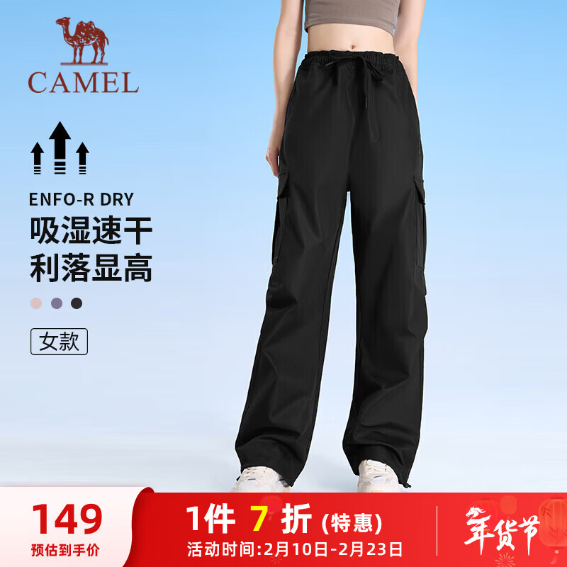 骆驼(CAMEL)速干工装女裤户外登山旅行休闲梭织长裤 J25BAYL6079 幻影黑 M