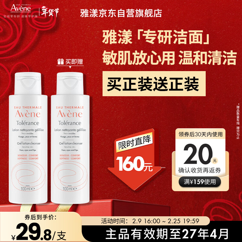 雅漾(Avene)专研温和洁面乳100ML 深层清洁敏肌0皂基保湿洗面奶效期至27.4