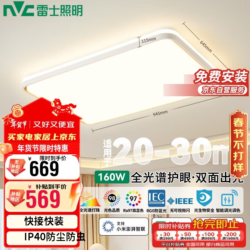 雷士照明(NVC)智能LED吸顶灯全光谱大瓦数160W客厅卧室简约灯具