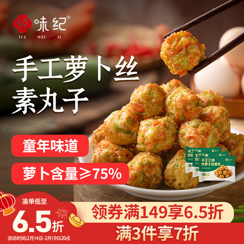 悦味纪手工三色炸萝卜丝素丸子300g*3包 约60个 空气炸锅食材年夜饭年货