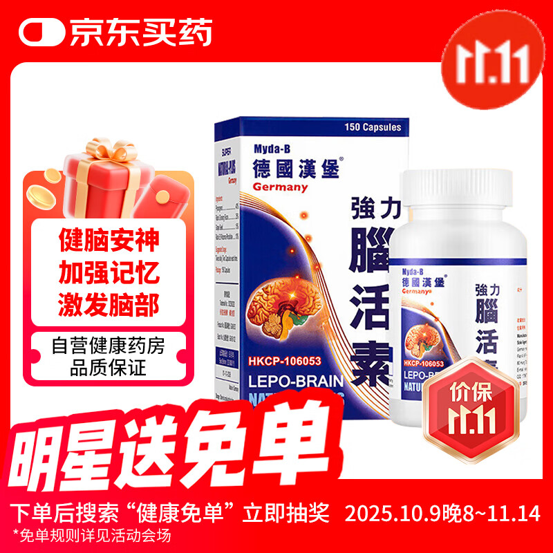 德国汉堡强力脑活素GLQ10 中老年补脑活营养素精华胶囊 心脑血管循环增强注意力记忆力150粒/瓶