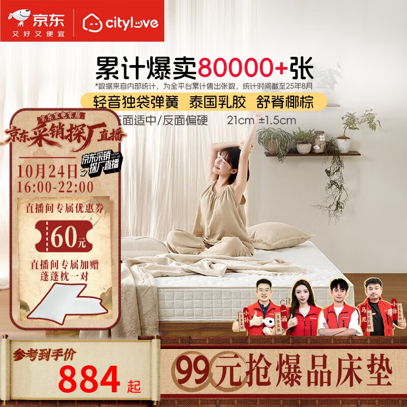 城市爱情喜临门床垫子乳胶独袋弹簧床垫双面席梦思 大白 1.8x2米 软硬双面