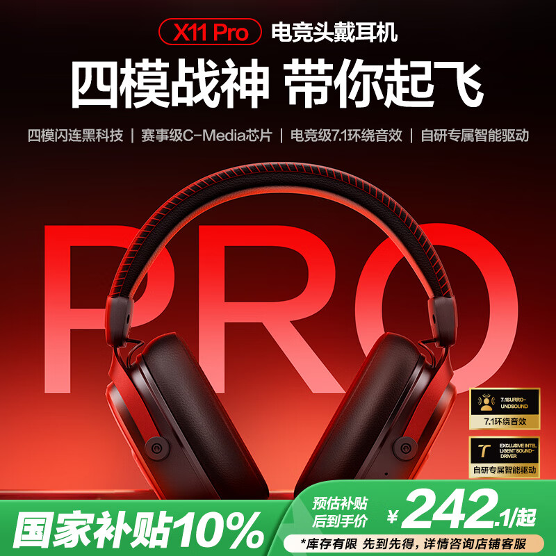 唐麦X11Pro四模无线游戏耳机7.1环绕音效头戴式三角洲FPS无畏契约cs电竞专用蓝牙有线听声辨位长续航黑