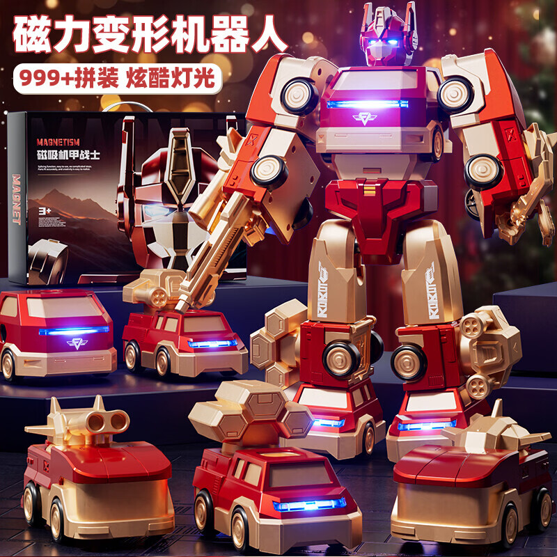 星云宝贝磁力磁吸变形机器人金刚机甲益智儿童玩具男孩生日礼物新年6-10岁 钢铁侠磁力变形机器人【百变拼接+灯光效果】礼盒+礼袋 2026新款大号磁力变形机器人积木拼装3-6岁8-12岁男童