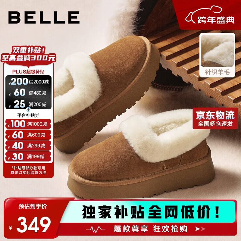 百丽厚底雪地靴加绒保暖勃肯鞋女靴子25冬新毛毛鞋JD012DM5 松烟棕 38