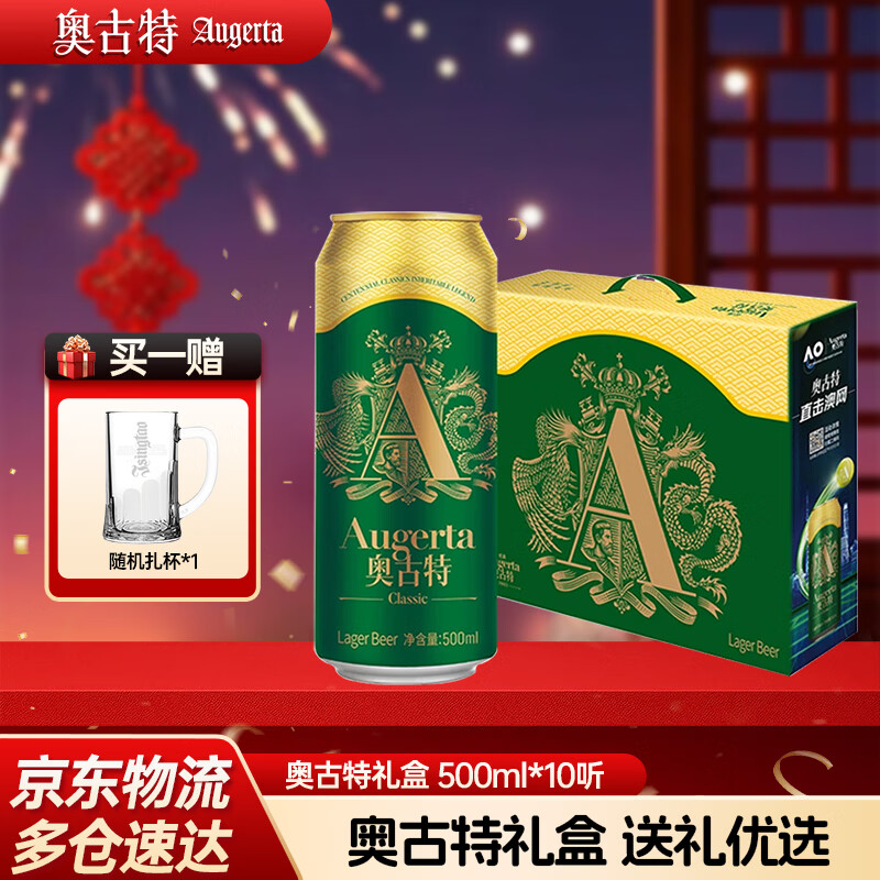 奥古特经典啤酒大罐礼盒装过节送礼正宗清爽好喝 500mL 10罐 整箱装