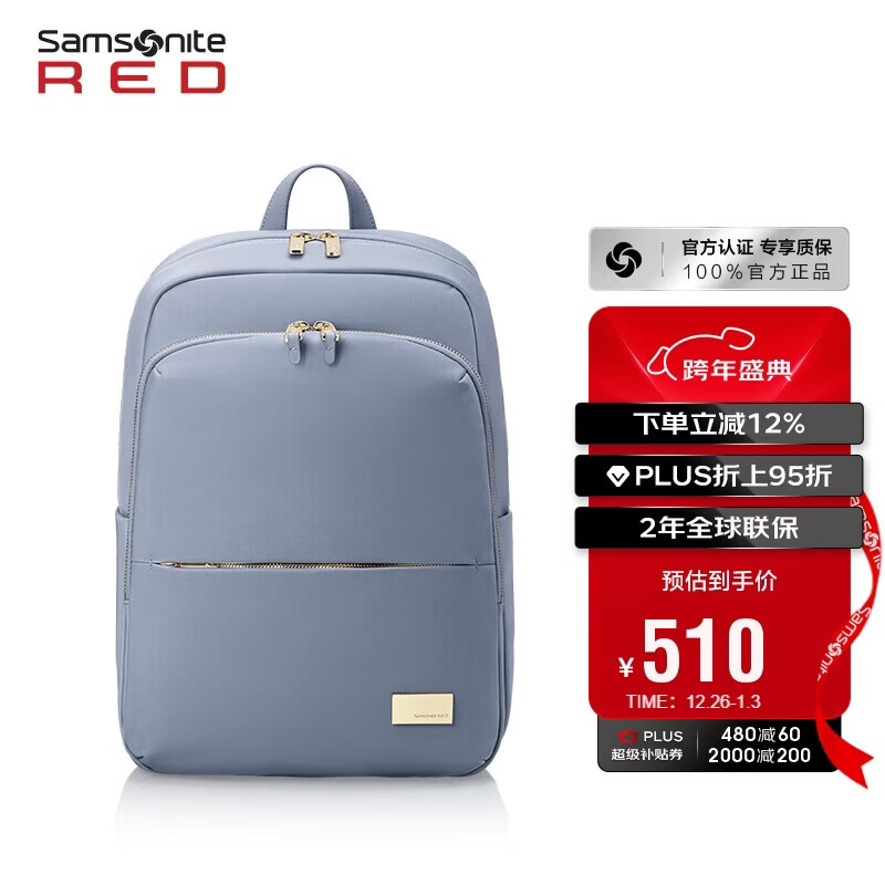 新秀丽(Samsonite)双肩包女14英寸笔记本电脑包旅行背包书包商务出差升级款新年礼物