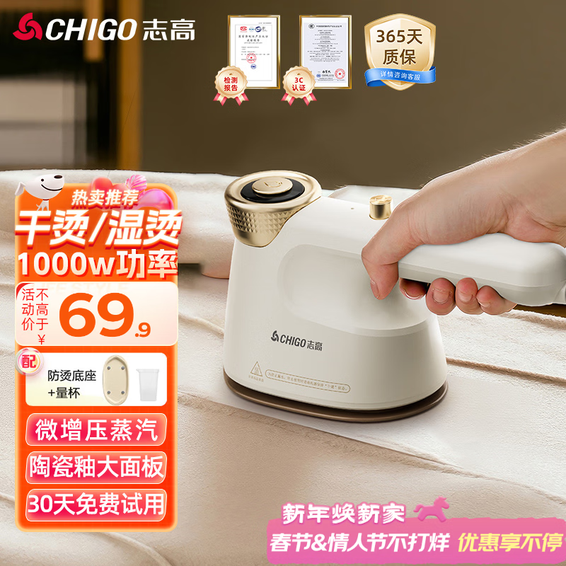 志高(CHIGO)99%好评】手持挂烫机熨烫机家用20g/min增压蒸汽熨斗120ml大水箱差旅便携小型熨斗除菌团购礼品801