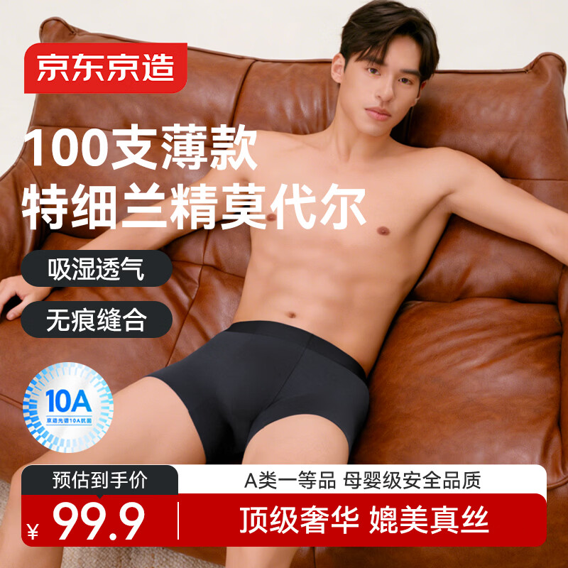 京东京造26新款100支莫代尔薄款10A抑菌男平角裤大码四角短裤衩3条装 2XL