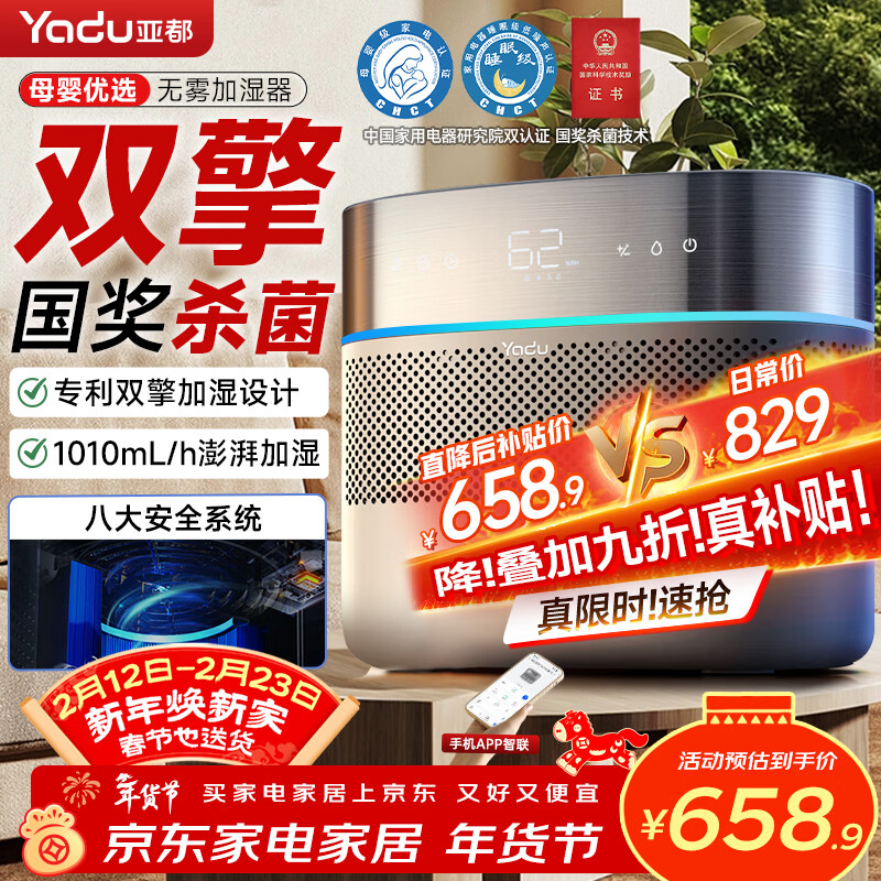 亚都(YADU)双擎无雾加湿器卧室家用办公室母婴1010ml空气净化大容量增湿SZ750-TJK800(Hi)Pro(支持鸿蒙智联)
