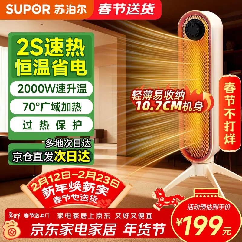 苏泊尔(SUPOR)【广域加热】暖风机/电热取暖器/小太阳/电暖器/电暖气加热风扇家用摇头大面积立式节能省电212