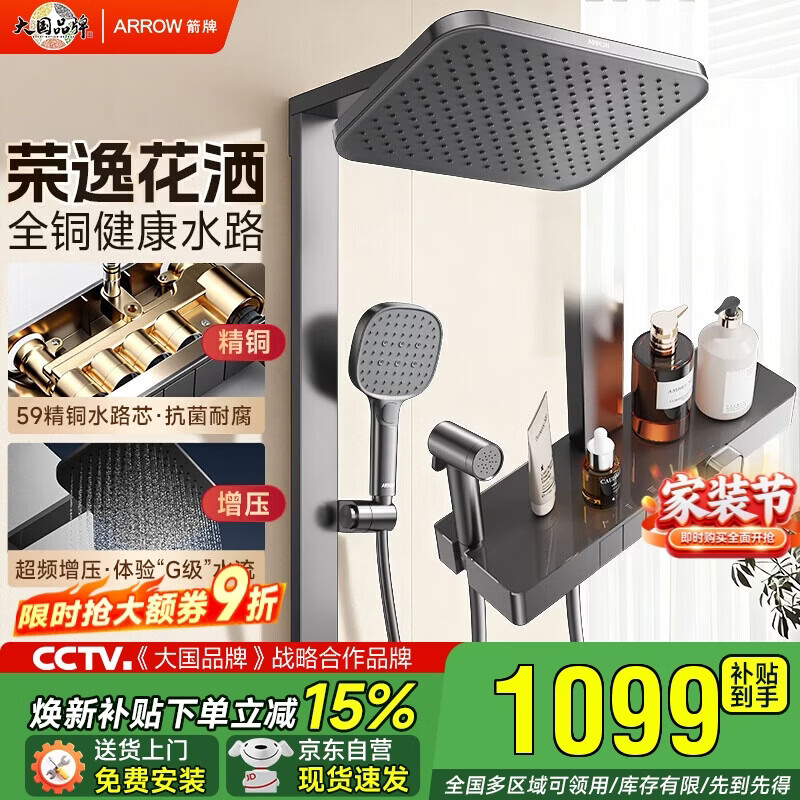 箭牌荣逸花洒淋浴方杆花洒套装 大顶喷淋浴器卫浴精铜【焕新补贴15%】