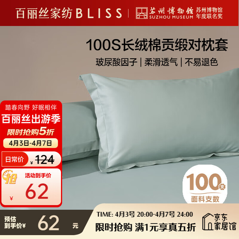 百丽丝水星家纺出品纯棉对枕套100支长绒棉枕套 四季纯色双人全棉枕巾
