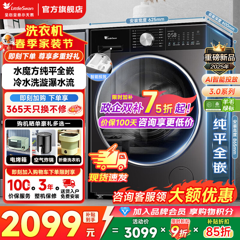 小天鹅(LittleSwan)滚筒洗衣机【小乌梅3.0】超薄全嵌10公斤家用全自动大容量水魔方智能投放 洗脱/洗烘一体 以旧换新 轻享版【TG10SC08PRO】 滚筒单洗