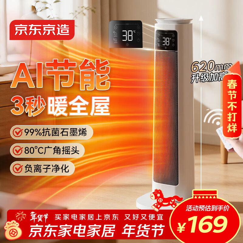 京东京造【超级单品】 石墨烯智能双核小太阳取暖器暖风机电暖气 远程遥控 负离子 智能恒温数显 暖阳Pro