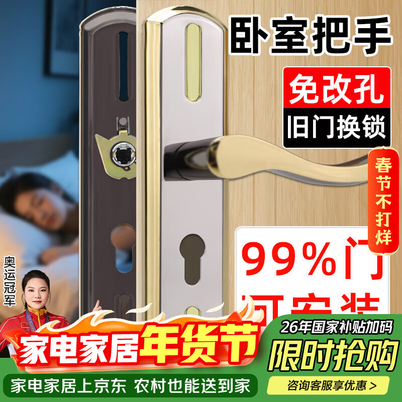 虎顿(HOTUN)卧室门锁面板室内家用通用型房门木门可调节门锁把手柄执手KTS04L