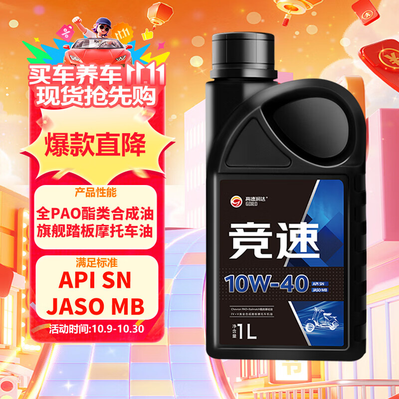 高德润达竞速踏板摩托车全合成机油JASO MB 4+5类 10W-40 1L装