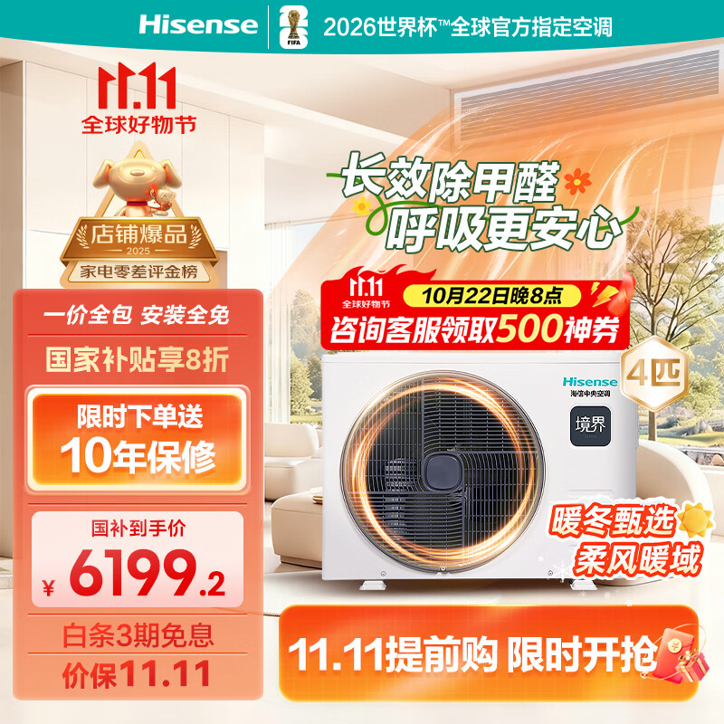 海信中央空调风管机4匹一拖一境界大客厅除甲醛 家电国家补贴 一价全包 一级能效HUR-90KF/YDZBp/Pd-1