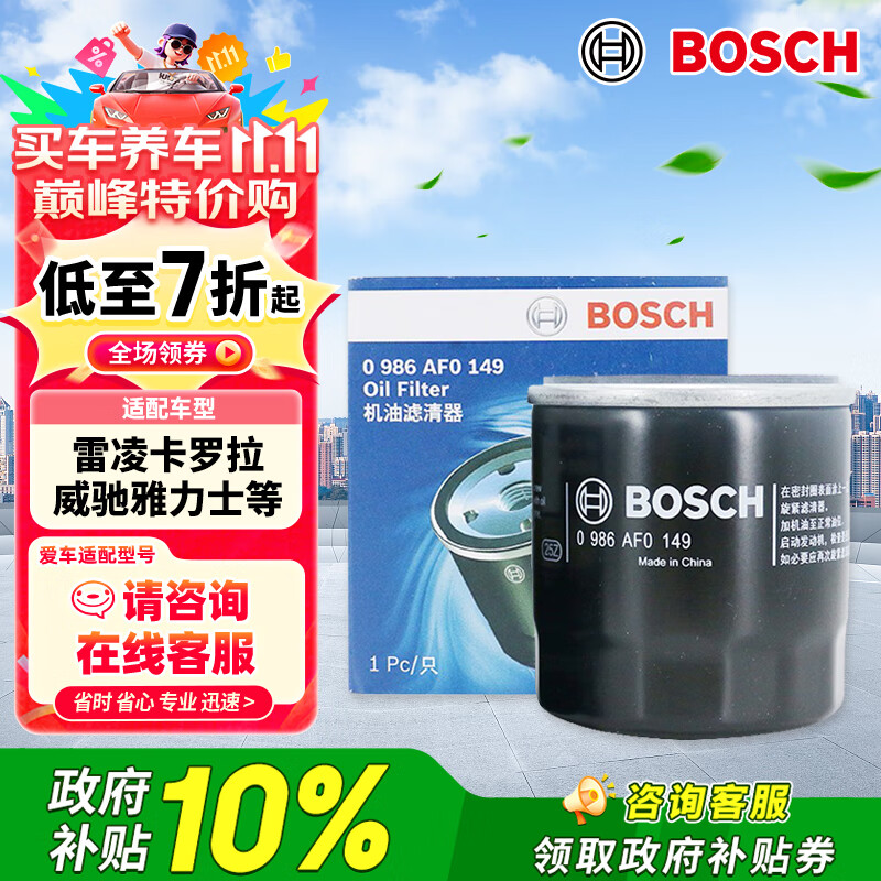 博世(BOSCH)机油滤芯滤清器格0149丰田凯美瑞卡罗拉雷凌汉兰达RAV4荣放亚洲龙