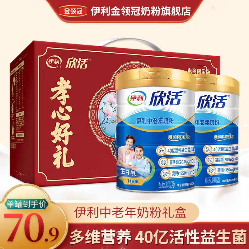 伊利欣活中老年奶粉成人中老年多维高钙营养配方奶粉 送长辈 2罐礼盒装