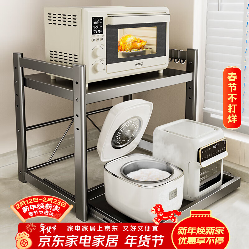 美厨物语厨房抽拉式微波炉置物架电饭煲烤箱置物架空气炸锅支架用具置物架