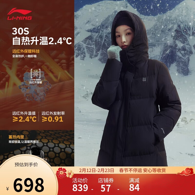 李宁火锅羽绒丨女子冬季保暖反光防泼水防风鸭绒长羽绒服AYMV408