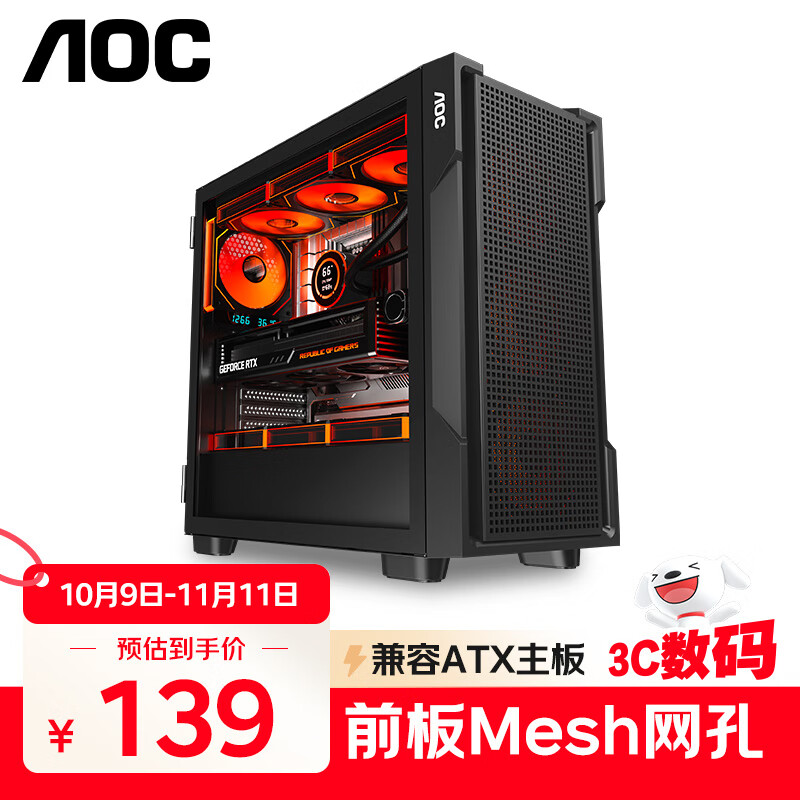 AOC机箱CG420B黑色游戏办公台式电脑侧透主机箱支持ATX主板/兼容360水冷/10风扇位/7槽PCI/兼容5080