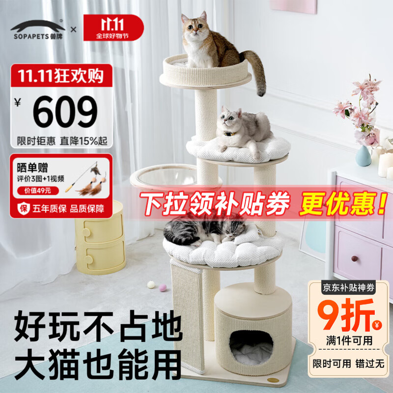 兽牌慕斯实木猫爬架不占地猫架猫窝猫抓板一体带太空舱大猫暖冬可用 慕斯