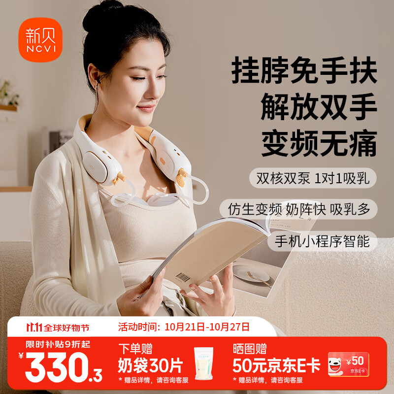 新贝吸奶器 电动吸奶器免手扶无痛全自动便携挂脖式双边大吸力8168