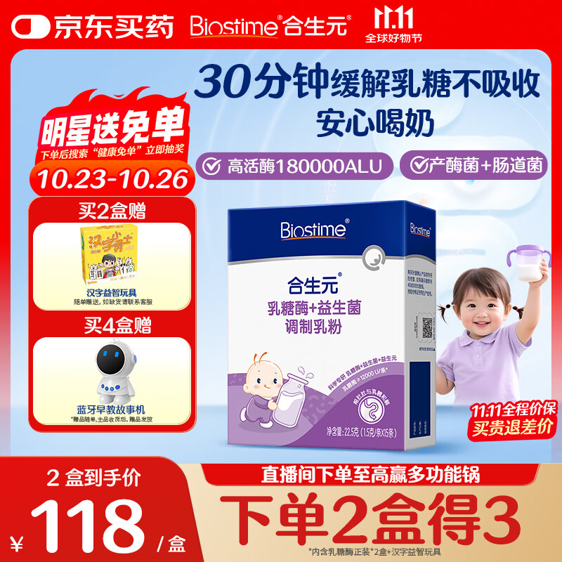 合生元乳糖酶+益生菌4周改善乳糖不吸收 调制乳粉15条